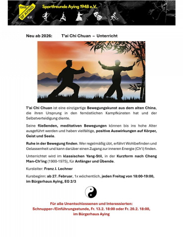 | © Copyright Sportfreunde Aying 1948 e.V. | Letzte Änderung: 12.03.2026 | Erstellt mit